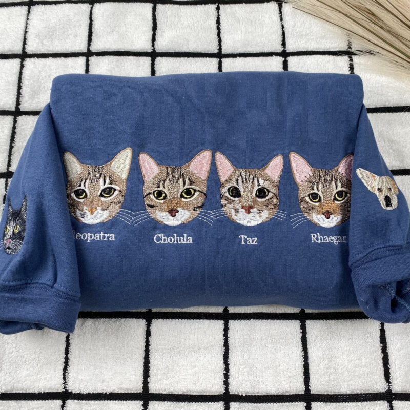 Cat Gift Hoodies Custom – Pet Portrait Embroidery Sweatshirts – Perfect Cat Lover Birthday Gift